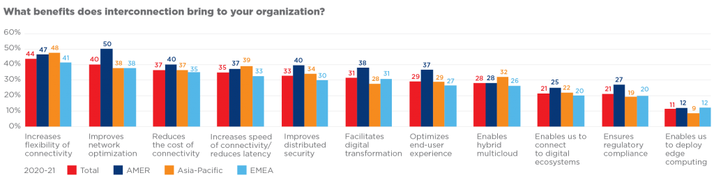 Odpowiadając na pytanie o największe priorytety w strategii cyfrowej ich przedsiębiorstw, 73% respondentów wskazało cyfryzację infrastruktury informatycznej jako główny priorytet, natomiast 54% uznało połączenia bezpośrednie (interconnection) za kluczowy czynnik wspomagający transformację cyfrową — co oznacza wzrost o 15% w porównaniu z rokiem ubiegłym.
