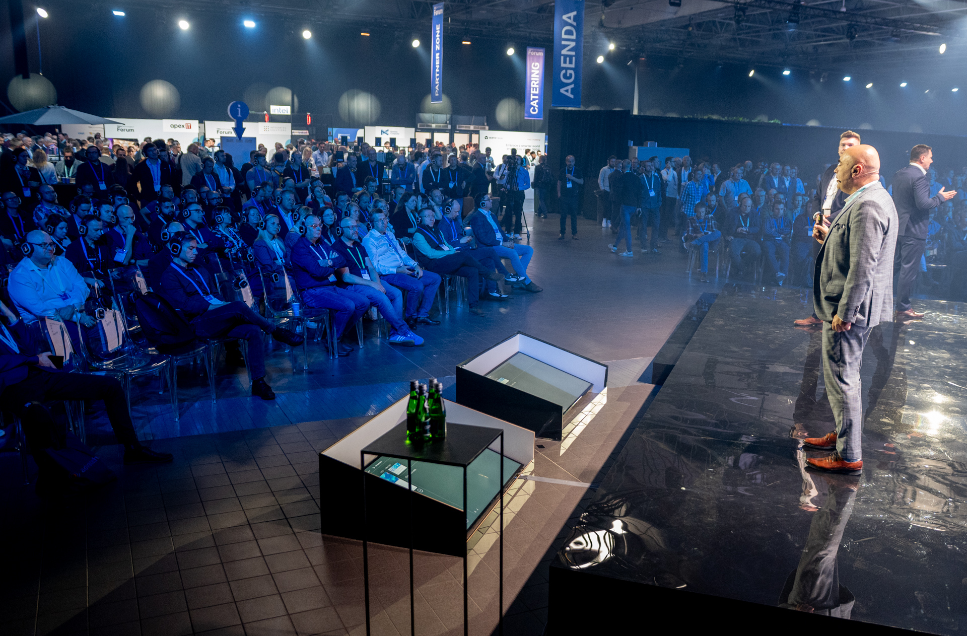 O scenach i sesjach wspomniałem w liczbie mnogiej nie bez przyczyny. Sceny były bowiem trzy i, jeśli nie liczyć porannego keynote’u oraz ceremonii Partner Awards kończącej całe wydarzenie, działały stale i niezależnie od siebie, nie będąc w żaden sposób rozdzielonymi. Z dziennikarskiej perspektywy to więcej niż wygodna zmiana. Zamiast siedzieć na głośnej sali plenarnej i słuchać wystąpień, jednocześnie starając się w niezbyt wygodnych ku temu warunkach zrobić notatki, można było po prostu wziąć słuchawki i zaszyć się przy stoliku w strefie dla mediów, w ciszy, spokoju i przy kawie.