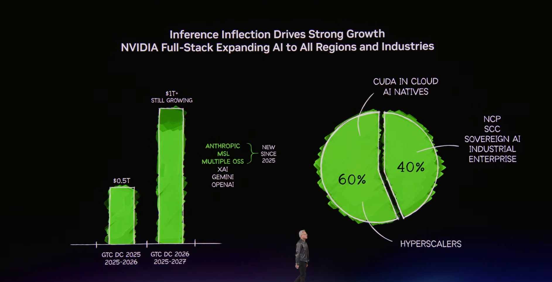 Podczas GTC 2026 szef Nvidii powiedział, że firma widzi już nie 500 mld USD potencjału przychodowego, jak zakładano wcześniej, lecz co najmniej bilion USD szansy związanej z platformami Blackwell i Vera Rubin do końca 2027 roku. Za tą korektą stoi przede wszystkim gwałtowny wzrost zapotrzebowania na układy do inferencji, czyli wykonywania gotowych modeli AI w usługach działających w czasie rzeczywistym.