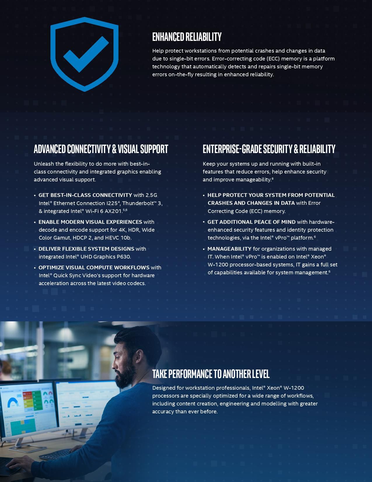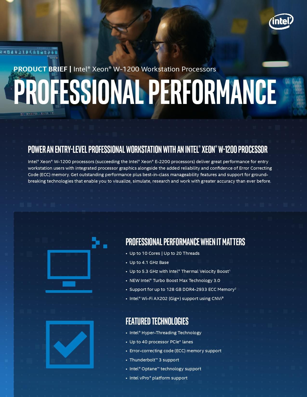 Firma Intel ogłosiła dziś zarówno nowe procesory Xeon, jak i procesory vPro 10. generacji przeznaczone na rynek profesjonalny. Procesory te obsługują wszystkie funkcje związane z zarządzaniem, których oczekujemy od procesorów wyposażonych w vPro, takie jak obsługa pamięci ECC wraz z technologią Intel Active Management Technology (AMT) i Endpoint Management Assistance (EMA).