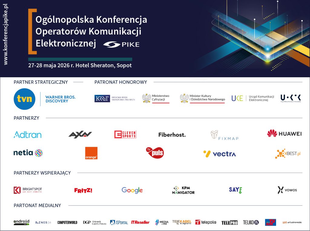 Dynamiczne zmiany regulacyjne, rozwój technologii cyfrowych oraz rosnąca rola sztucznej inteligencji stawiają przed sektorem komunikacji elektronicznej i mediów nowe wyzwania i wymagają wspólnej, pogłębionej refleksji nad kierunkami jego rozwoju. Wiosenna Konferencja PIKE, kontynuująca ponad 30-letnią tradycję spotkań branży komunikacji elektronicznej, stanowi jedno z kluczowych forów tej debaty. Ubiegłoroczna edycja zgromadziła ponad 750 uczestników z 300 firm i instytucji, ugruntowując pozycję konferencji jako największego wydarzenia sektora telekomunikacyjnego i medialnego w kraju.