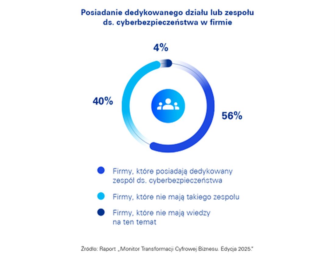 Październik, Europejski Miesiąc Cyberbezpieczeństwa, to okazja do podsumowania stanu polskich firm w tym obszarze. Najnowsza edycja badania KPMG „Monitor Transformacji Cyfrowej Biznesu” wskazuje, że wskaźnik cyberbezpieczeństwa i ryzyka wzrósł do 5,9 pkt, czyli o 1 pkt więcej niż rok wcześniej. Rośnie także liczba organizacji z wyspecjalizowanymi działami ds. bezpieczeństwa, bo w 2025 roku posiada je już 56% firm, co oznacza wzrost o 16 punktów procentowych w ciągu roku.
