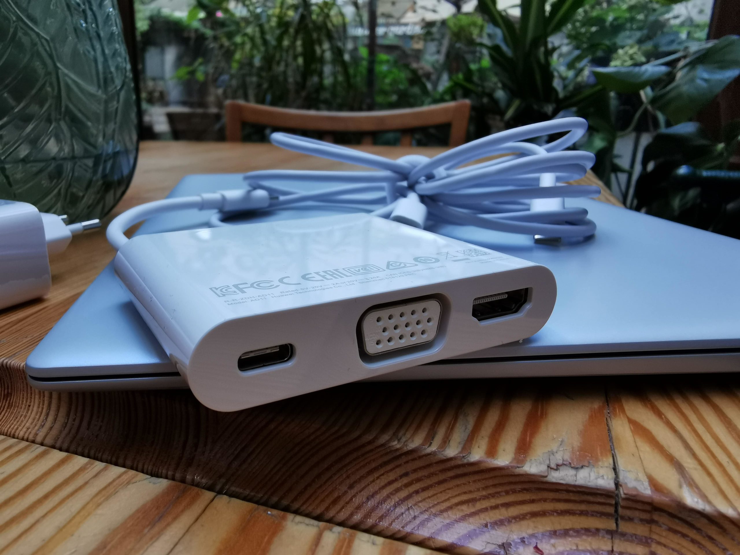 Wspominałem o akcesoriach – wewnątrz znajdziemy kabel USB-C, ładowarkę USB-C oraz specjalny moduł, za pomocą którego z USB-C zrobimy USB-A, Kolejne USB-C, D-Sub oraz HDMI.Przejście w stronę masowego stosowania USB-C będzie trwało jeszcze lata i jest uzależnione właśnie od producentów peryferiów. Dlatego też moduł ten jest właściwie niezbędnym, jeśli chcemy korzystać z większości współcześnie używanych urządzeń peryferyjnych – nadal korzystających z USB typu A. Tego typu gniazda MateBook X po prostu nie posiada.