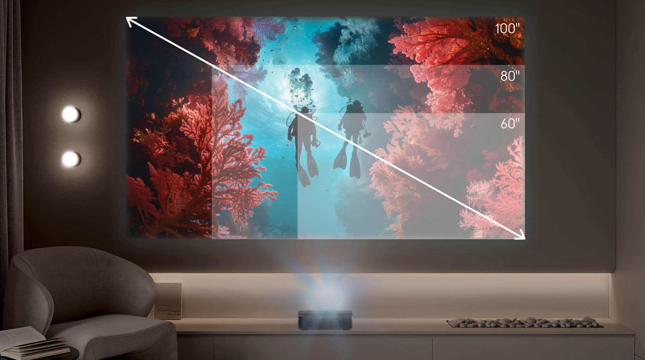 Sirius PG55B to z kolei propozycja dla osób szukających dużego obrazu na małej przestrzeni. Dzięki technologii ultra-short throw, projektor wyświetla 100-calowy obraz już z 40 cm od ściany. Kompaktowa obudowa i minimalistyczny design sprawiają, że Sirius dobrze wpisuje się w nowoczesne wnętrza, bez konieczności montażu na suficie czy używania kabli.