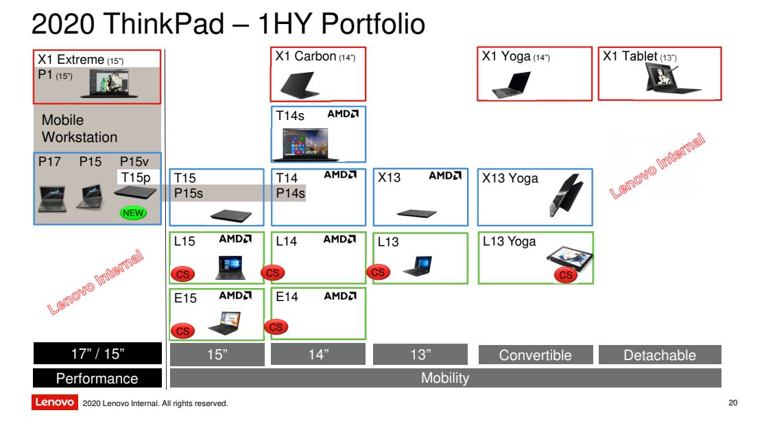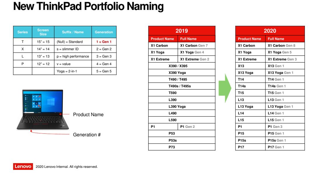 Jak wszystkie nowe ThinkPady poza linią X1, seria P przyjmuje nowy schemat nazewnictwa: W związku z tym Lenovo ThinkPad P15 jest odpowiednikiem ThinkPad P53, a Lenovo ThinkPad P17 jest następcą ThinkPad P73. Oprócz nowego nazewnictwa, seria P również rośnie w tym roku: Lenovo pokaże nowy model – ThinkPad P15v. Jak wyjaśnia mapa drogowa, „v” oznacza “value” – bardziej przystępny cenowo. Ponadto Lenovo wypuści przemianowany ThinkPad P15v w ramach serii T jako ThinkPad T15p. Oba będą prawdopodobnie bardzo do siebie podobne, z wyjątkiem innej karty graficznej. Można założyć, że do P15v trafi karta NVIDIII lub AMD z serii profesjonalnej, podczas gdy do T15p GeForce lub Radeon. Wszystkie nadchodzące modele ThinkPad P, a także ThinkPad X1 Extreme Gen 3 i ThinkPad P1 Gen 3 będą wyposażone w procesory Intel Comet Lake H, za wyjątkiem P14s – opartym na AMD.